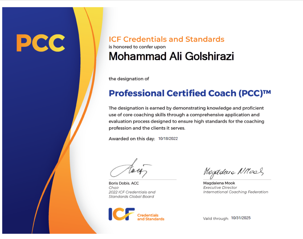 من، محمد علی گل شیرازی مشاور مدیریت و مربی حرفهای هستم با تمرکز بر توسعه سازمانی، منابع انسانی استراتژیک، و کوچینگ اجرایی. مأموریت من، توانمندسازی سازمانها و رهبران برای دستیابی به رشد پایدار، تحول واقعی، و اثرگذاری جهانی است.